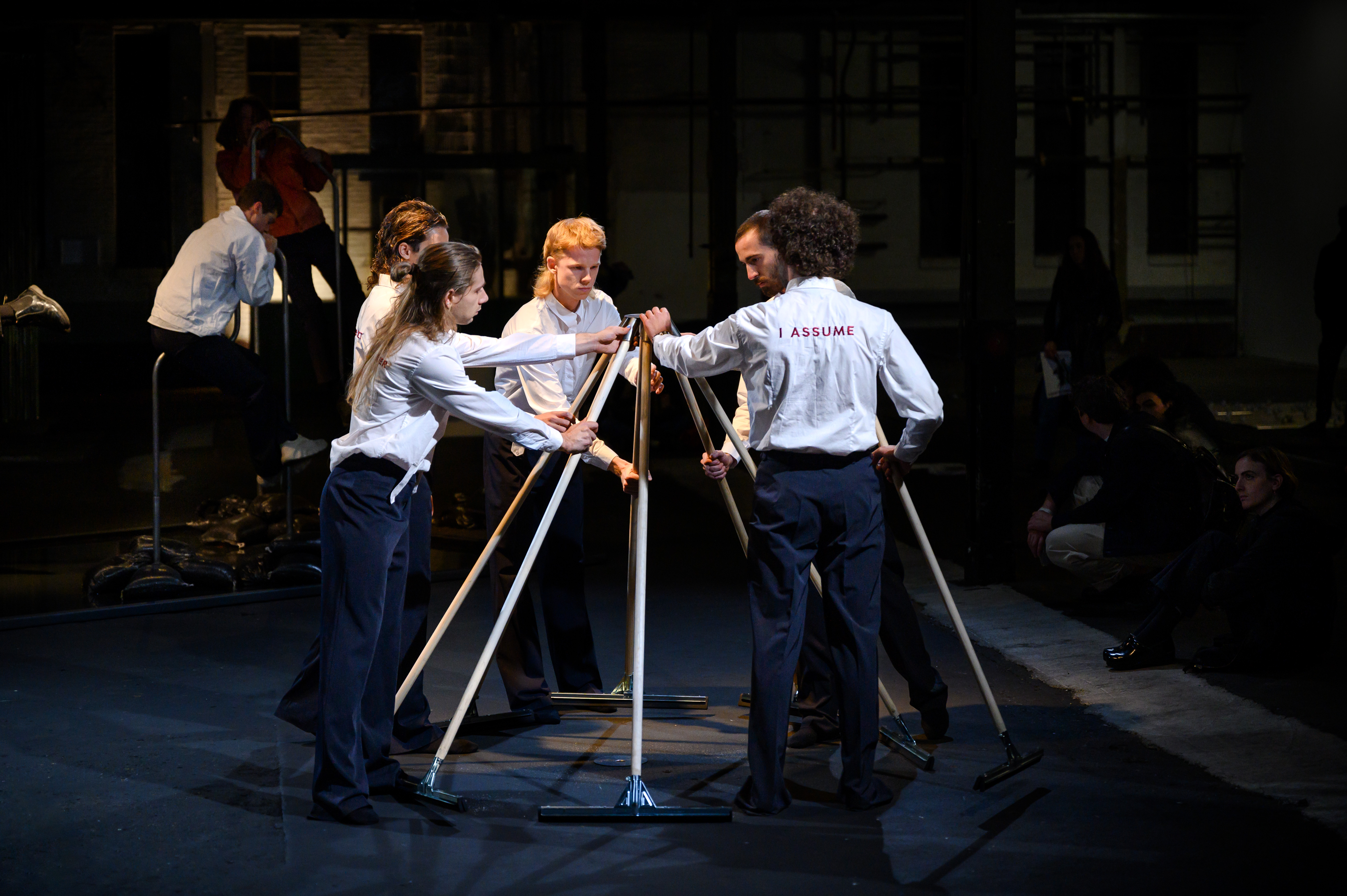 Through three acts, a changing manipulation of water—from contained reflection to a force defiant of control, and later, a puddle of introspection—speaks to the ever-changing nature of shame. Within a choreography of endurance, friction, and the communal, social, and intimate gestures are abstracted, becoming actors for the destabilisation of normative structures. I assume the stranger as a subject who can be trusted.